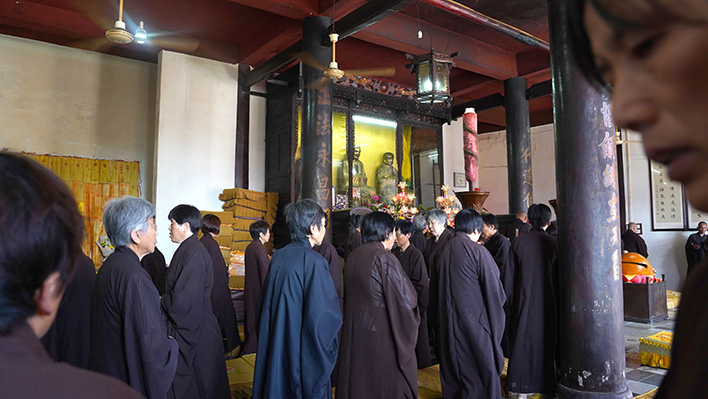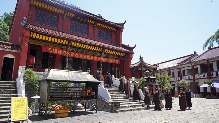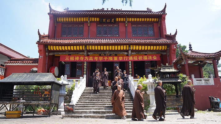 三祖禅寺僧众,在此期间谨遵佛制,每日按时于上院祖师殿潜心诵经,精进修行,虔诚祈愿十方三世诸佛、护世诸天护佑世界和平,国泰民安,社会和谐,众生远离灾难,福慧增长,离苦得乐!