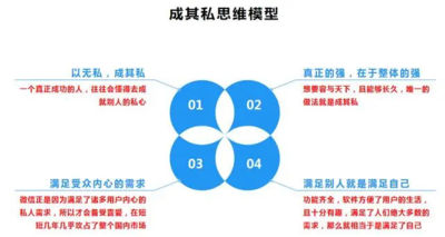 同样,成其私思维在企业中经常会被用到,比如说推行某个新产品时,满足消费者或者客户的内在需求,这样的商品,往往更容易大众化。