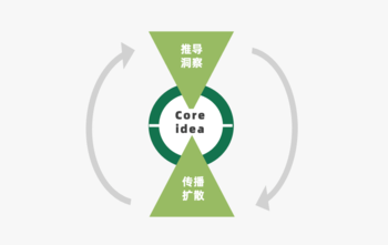 方案就像一个倒三角形+一个正三角形的叠加,倒三角形即通过推导及洞察得出一个聚焦的core idea(一个Action),正三角形则是将这个核心点,进行传播扩散。