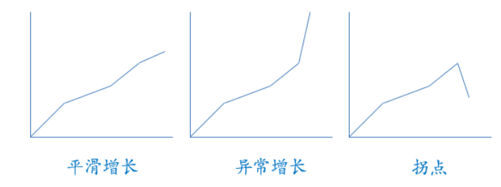 公司销售收入每年增长10%,这属于平滑增长。2019年突然增长30%,这属于异常增长。2019年销售收入下降了20%,这属于出现拐点。