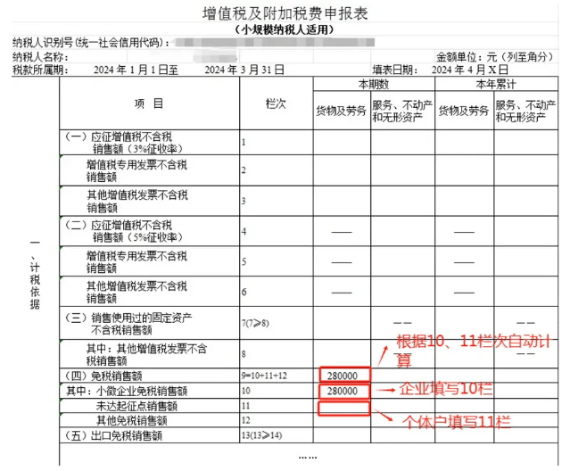 1.若纳税人为个体工商户,则填写第11行“未达起征点销售额”相关栏次。