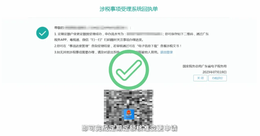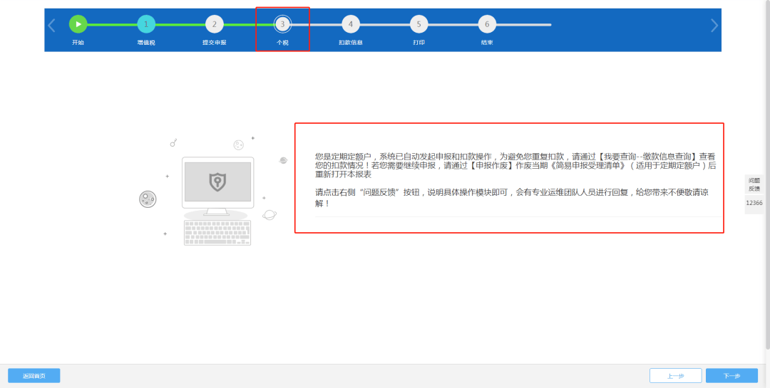 (注意:申报个税时有下图提示时,需要您自行判定本季度销售额是否超过核定金额。若未超过则代表申报成功无需更正;若超过请到窗口更正申报。)