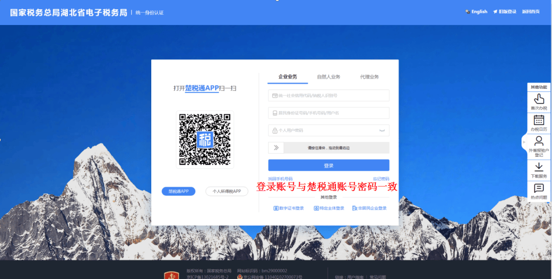 2.选择【企业业务】,依次填写相关信息,点击登录。
