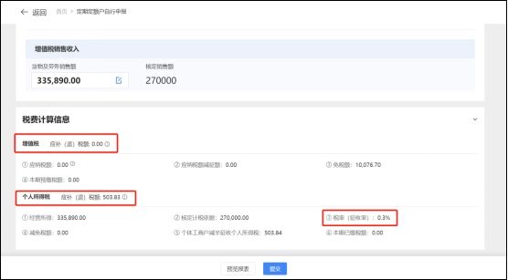 若定期定额户当期还未进行增值税及其附加税费申报,一并自动计算展示。