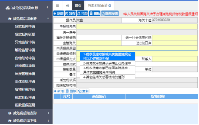 减免税货物税款担保申报操作