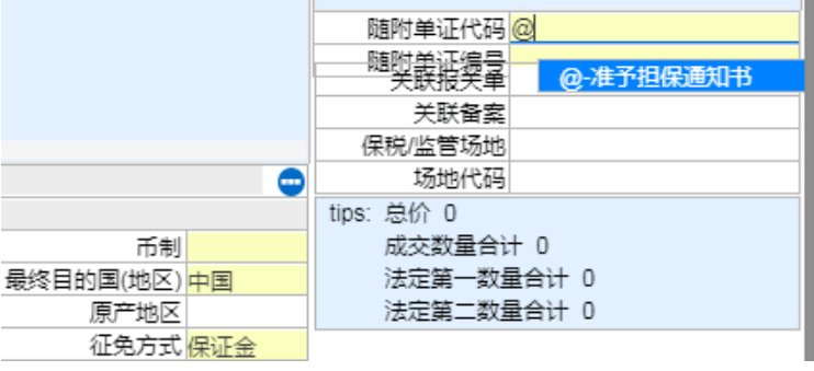 ①随附单证栏选择“ 准予担保通知书”,并填写《准予担保通知书》编号。