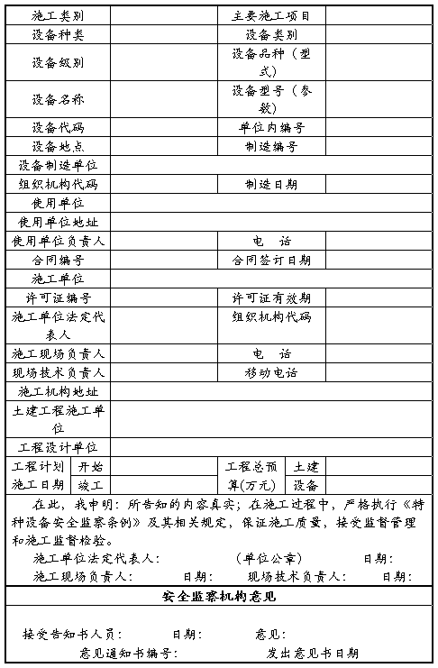 特种设备安装改造维修告知书分为两种形式。本表(TSZS003-2003)适用下列情况: